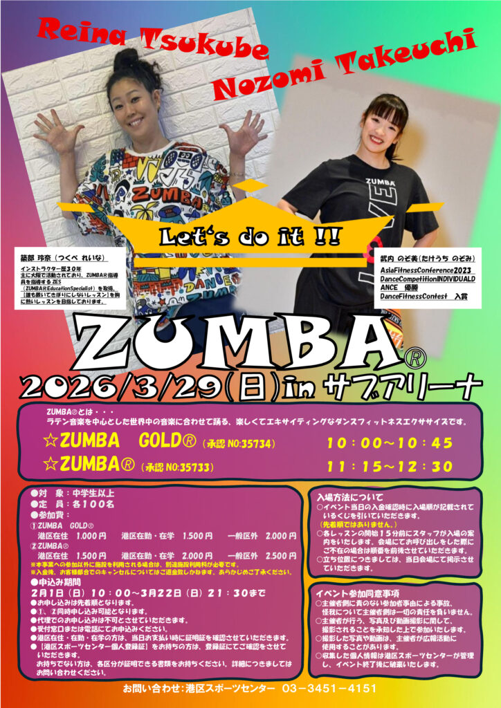 【港区スポーツセンター】ZUMBA®イベントレッスン開催のお知らせ